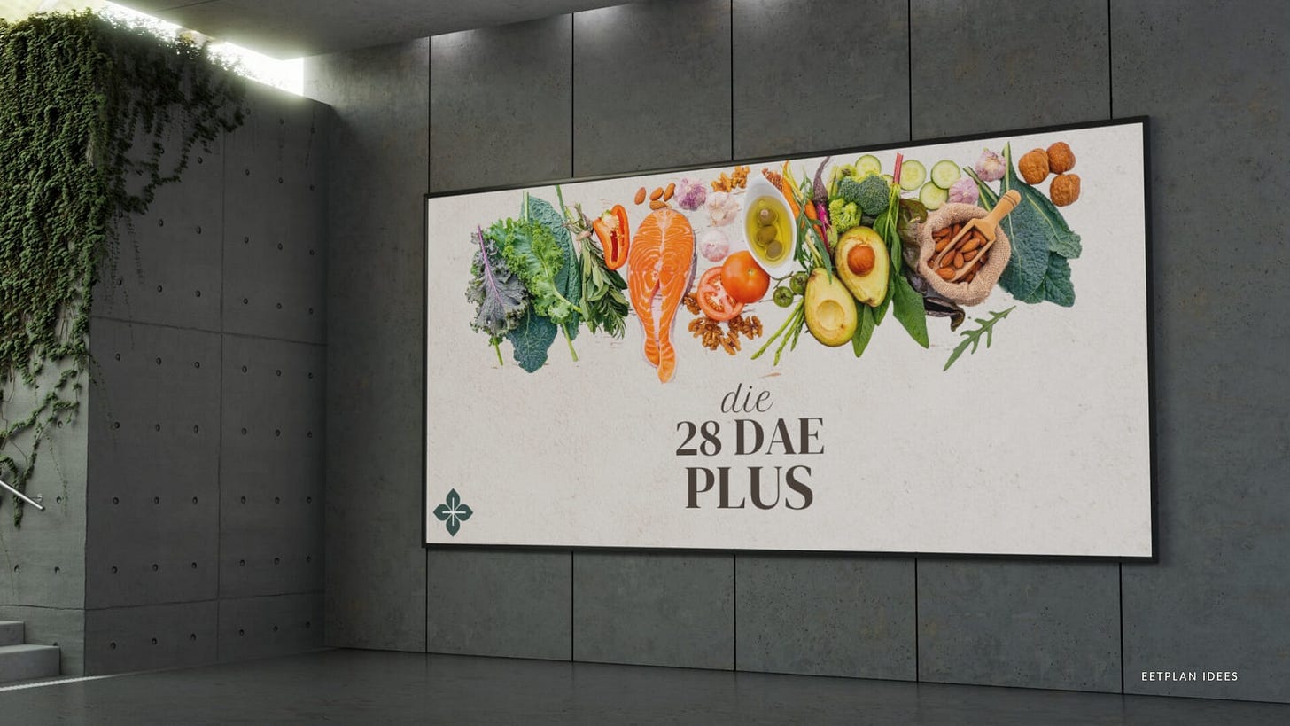 Wat as ons al die gunsteling dele van Die 28 Dae Eetplan behou: die struktuur, die eenvoud, die resultate; maar dit herbou deur gebruik te maak van wat ons nou weet werk vir gewigsbestuur in 2025?